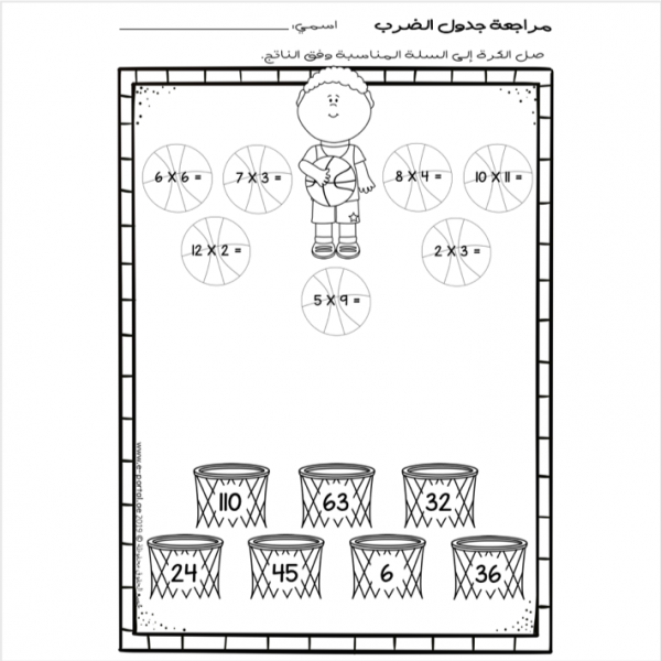 مجموعة أوراق عمل لمراجعة جدول ضرب الأعداد من العدد اثنان إلى العدد اثنى عشر. المجموعة مكوّنة من 18 ورقة عمل تم تصميمها لمساعدة الطلاب على ممارسة وتعلم وإتقان حقائق الضرب بطريقة ممتعة وجذابة ومُبسّطة. جميع الأوراق غير ملوّنة وبحجم A4.